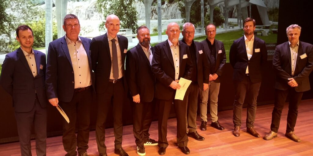 Stolte vinnere av ESDA 2023 for Norge. Fra venstre mot høyre: Sivert Olsvik og Tor Benjaminsen, Størksen Rustfri Industri, Florian Kosche, DiFK, Bjarne Ringstad, Code Arkitektur, Børje Hagenes, Størksen Rustfri Industri, Lage Bakken, Statens Vegvesen/Nasjonale Turistveger, Eivind Nygaard, Code Arkitektur, Ola Ulvolden og Torstein Brun, Brun Bygg